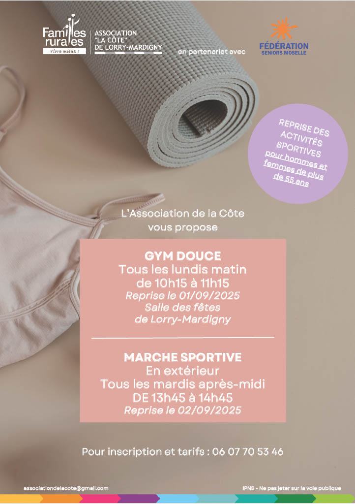Reprise des activités à Lorry-Mardigny ! 28 août, 2025 L’Association Familles rurales de Lorry-Mardigny reprend ses activités annuelles en septembre.