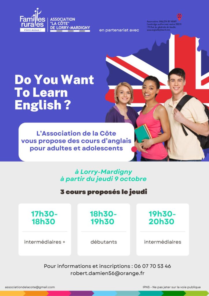 L’association de la Côte relance ses cours d’anglais à destination des adultes et des adolescents à partir du 9 octobre 2025. Ils seront organisés en partenariat avec English-by-Heart, une association certifiée Cambridge English, autorisée à faire passer des examens officiels de langue anglaise, reconnus à l’international.