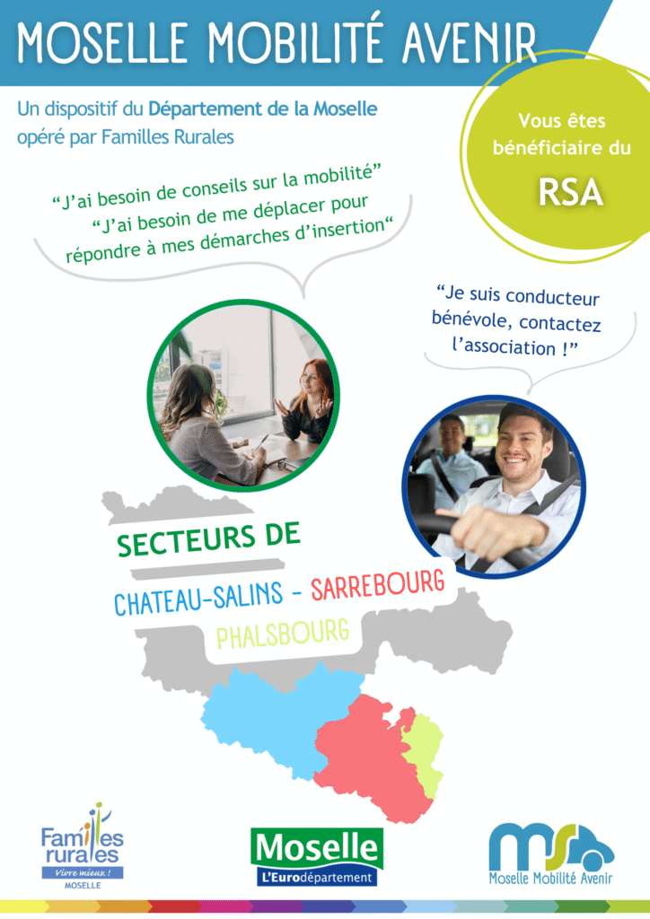 Le service Moselle Mobilité Avenir a été mis en place de mars à octobre 2025, dans le but d’apporter des conseils et une solution de mobilité à destination des bénéficiaires du RSA résidant sur le territoire de Sarrebourg / Château-Salins. Grâce à des conducteurs bénévoles habitant sur le territoire, le service Moselle Mobilité Avenir apportait une solution de déplacement vers l’emploi, la formation, le logement… dans le but de faciliter l’accès aux droits, à l’insertion sociale et professionnelle.